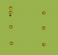Se trata de un circuito de velocidad con balón.El jugador realiza un pase elevado al portero y cambia el ritmo para recibir el balón por delante de éste.Posteriormente realiza una pared con cambio de ritmo con otro compañero.La tercera acción será una conducción de balón a máxima velocidad.Por último realizará un pase largo y elevado para finalizar con un sprint hasta el final.